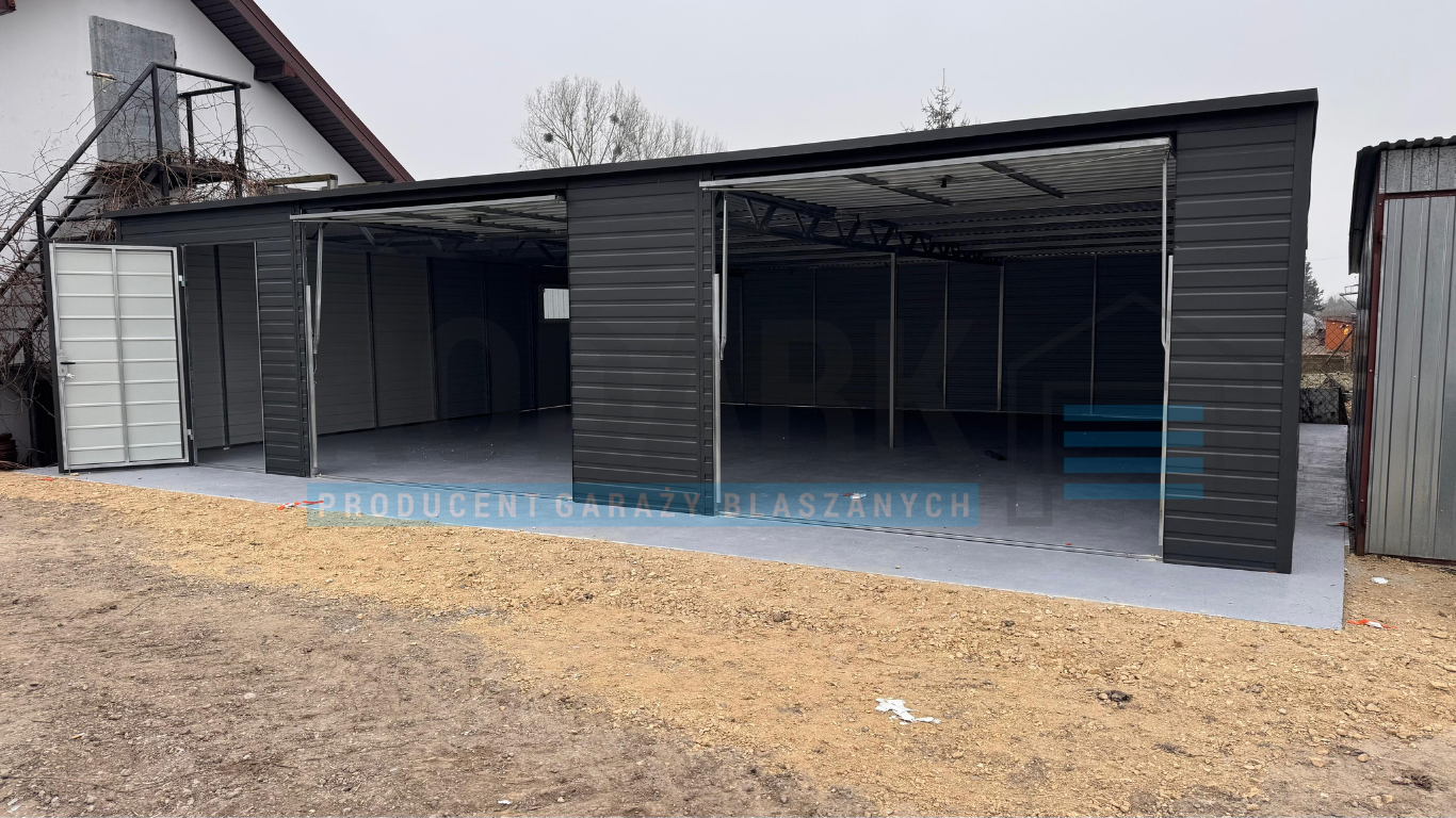 Garaż blaszany 8x5 spad w tył GRAFIT
